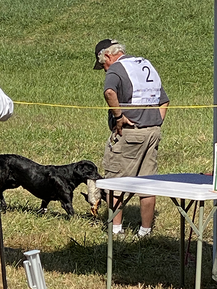 The 6th Series, a Water Double with Ducks started when dog #20 came to the line at 10:42 am. The weather warmed up nicely in the low 80's. Our gun change happened after dog #32 completed her run at 12:06 pm. We got back going with dog #2 at 12:12, ending this series with dog #18 at 1:44 pm.